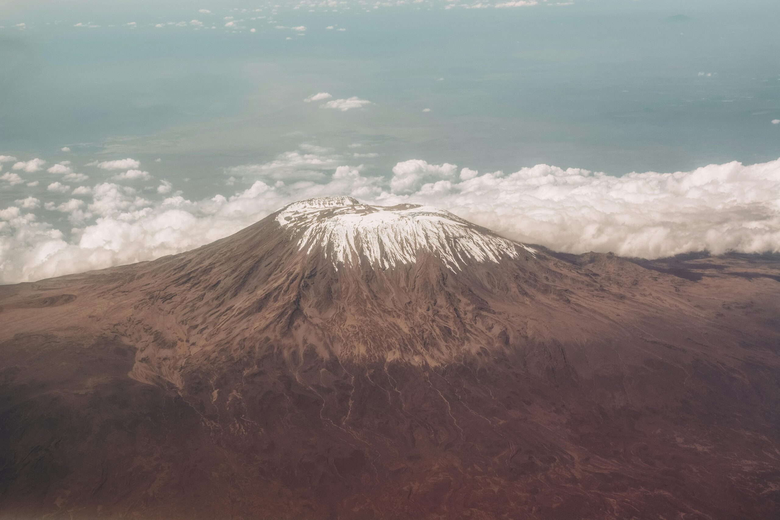 your first distant view of Kibo Peak, the snow-covered summit.